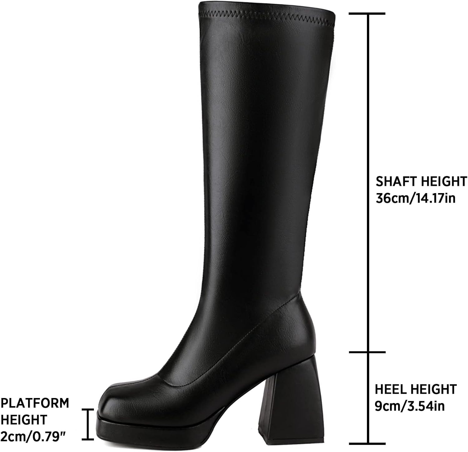 - ⭐Platform boots heel height: 8cm/3.15", platform height: 2cm/0.79", shaft height: 36cm/14.17", opening: 37cm/14.57in.